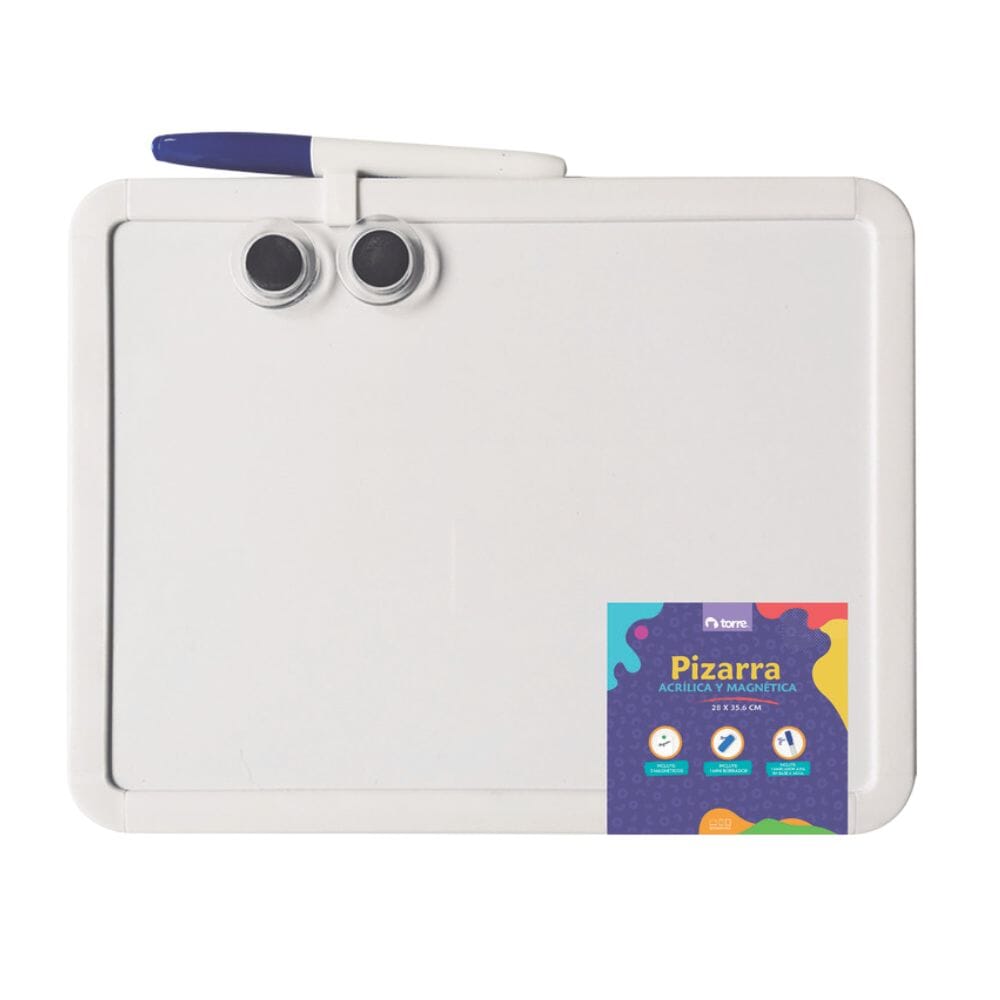 La pizarra acrílica magnética Torre de 28x35 cm es la herramienta perfecta para oficinas, aulas o espacios creativos. Su superficie lisa y resistente permite escribir con marcadores borrables fácilmente, mientras que su función magnética facilita sujetar notas, recordatorios o documentos importantes.