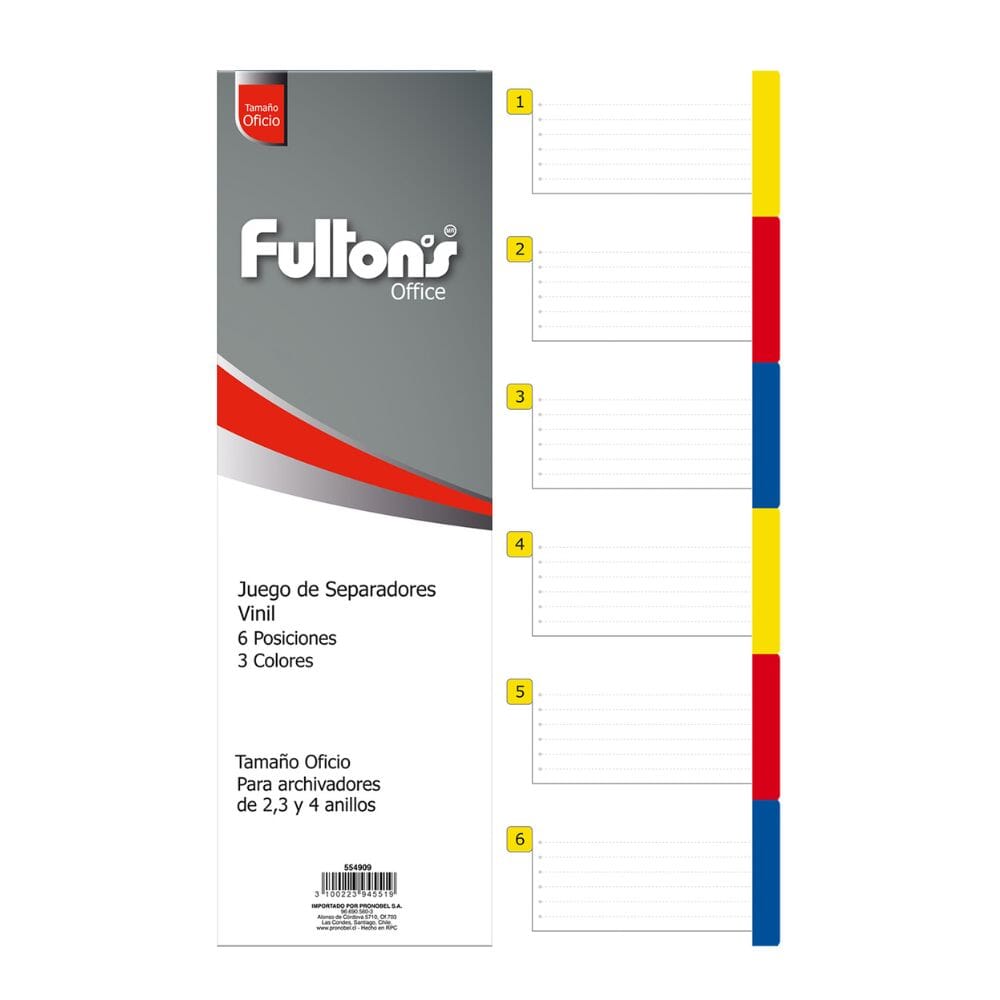 El Separador Oficio Vinil de 6 Posiciones de Fultons es una herramienta ideal para organizar documentos de manera eficiente.