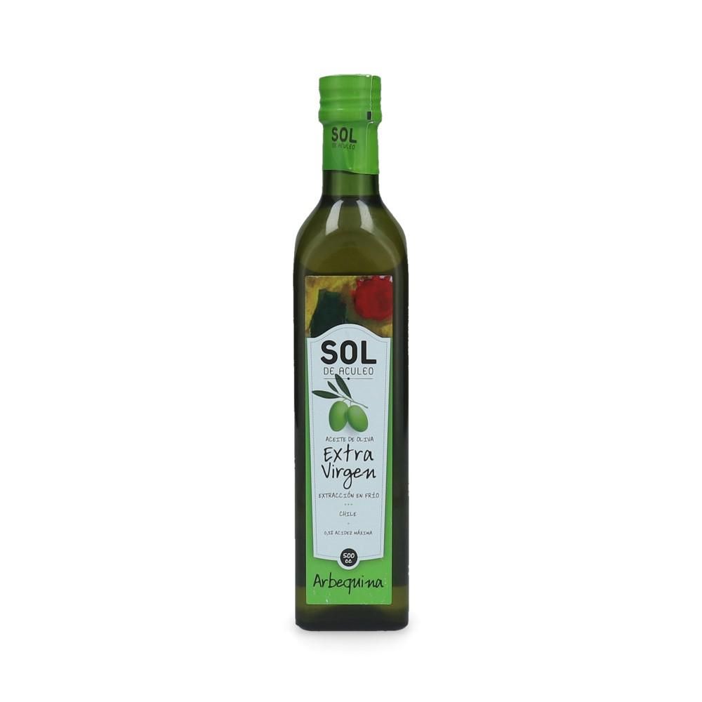 Experimenta la suavidad y el sabor distintivo del Aceite de Oliva Extra Virgen Arbequina de Sol de Aculeo. En su práctica presentación de 500 ml, este aceite premium es perfecto para los amantes de la cocina gourmet y la alimentación saludable.