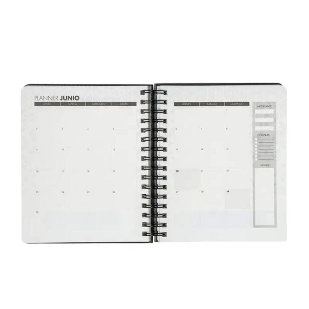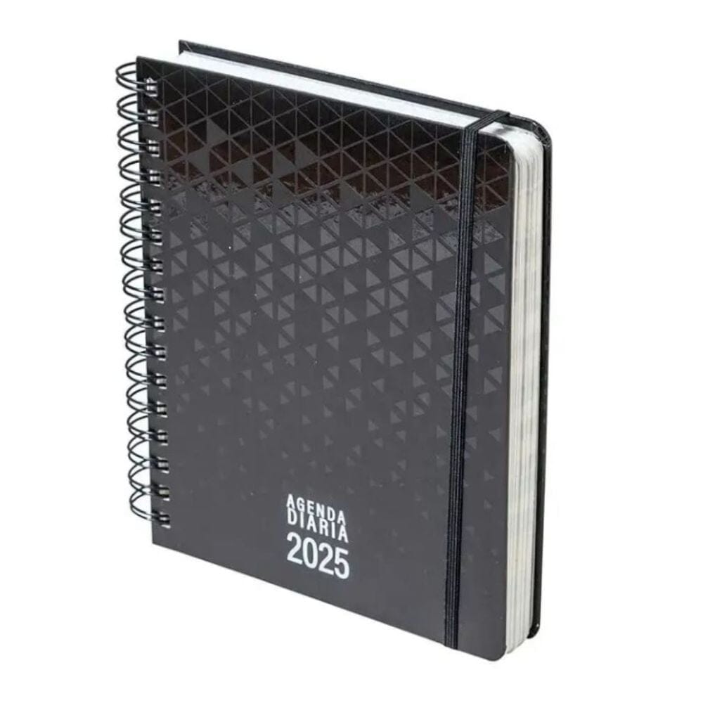 Organiza tu año con estilo y practicidad. Esta agenda 2025 cuenta con diseño Black, formato día por página, y espiral para mayor flexibilidad al escribir. Su cierre con elástico asegura tus notas y documentos importantes, ideal para estudiantes y profesionales que buscan mantenerse organizados con un toque moderno y funcional.