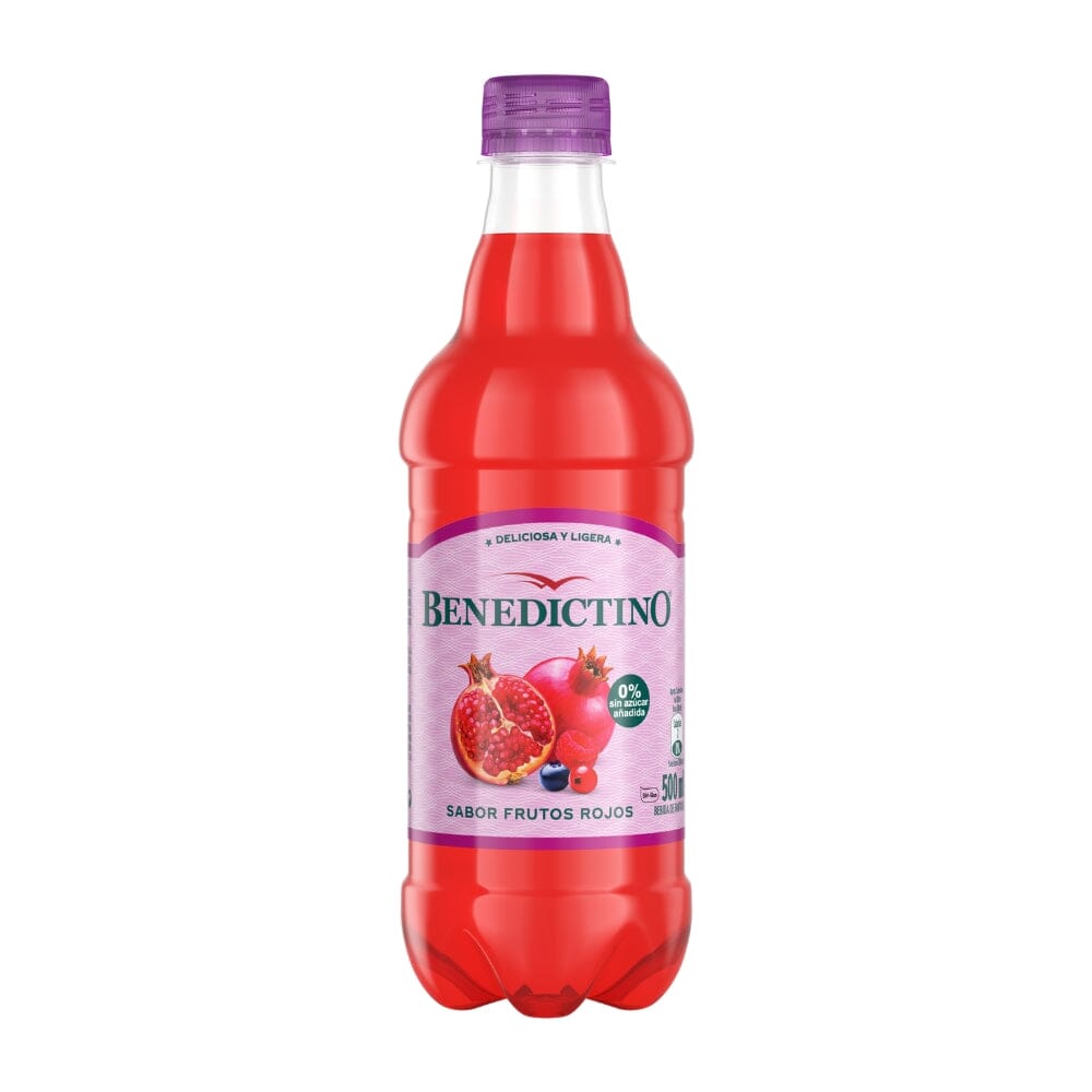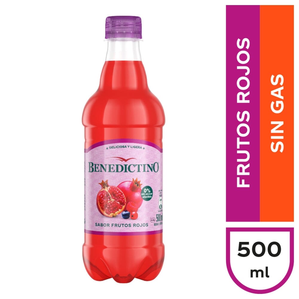 El agua saborizada Benedictino en la presentación de 500 ml tiene un sabor a frutos rojos refrescante, ideal para quienes buscan una opción sin gas. Esta bebida es perfecta para disfrutar en cualquier momento del día, ya que combina la hidratación con un toque de sabor frutal.