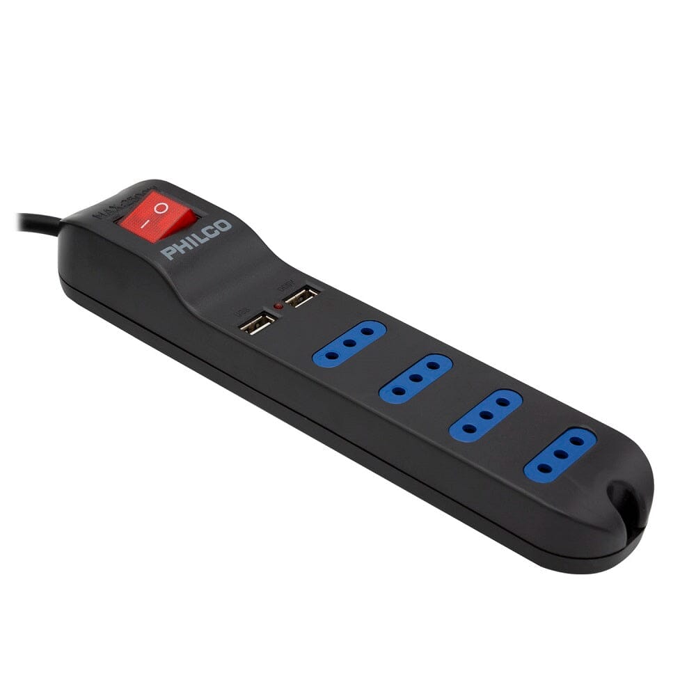 Extensión eléctrica, 4 tomas de conexión hembra + 2 USB.