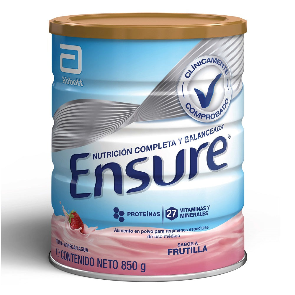 Ensure es un alimento de uso medico que esta dirigido a personas adultas, las que con su alimentación diaria no logran cubrir los nutrientes necesarios. Ensure sabor frutilla entrega una nutrición completa con proteínas, 25 vitaminas y minerales, además es libre de lactosa y gluten. Con su formato en polvo, solo debes disolver el contenido en agua y estará listo para tomar.