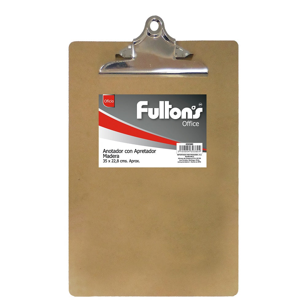 Anotador de madera tamaño oficio Fultons, cuenta con apretador metálico tipo mariposa. Producto Ideal para reuniones, toma de datos, supervisiones y dibujo.