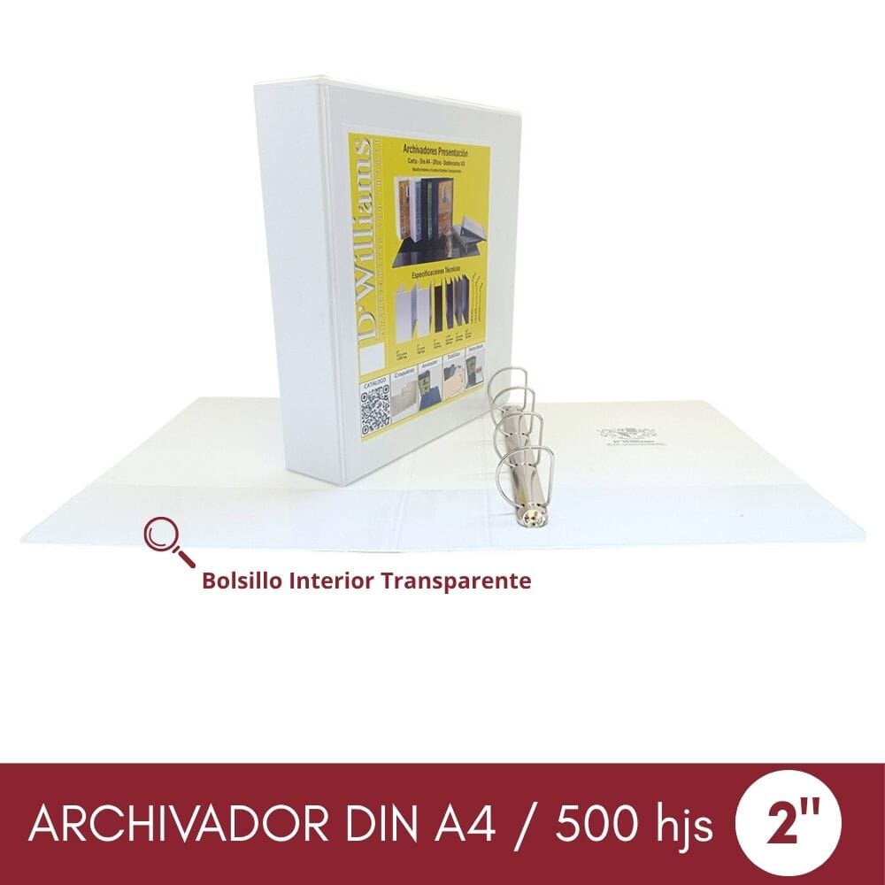 Descripción técnica | Archivador formato A4 con 4 anillos de 2". |