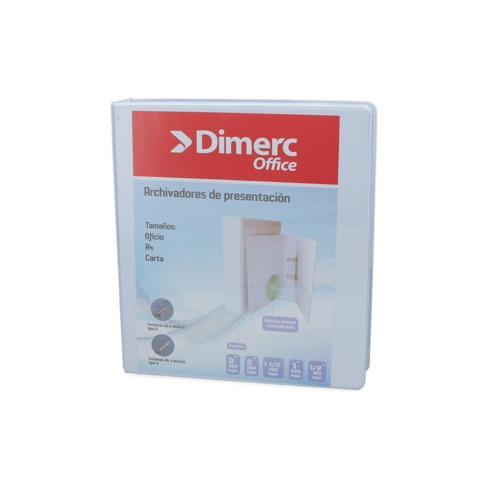 Con el Archivador Catálogo Dimerc podrás guardar hasta 350 hojas, gracias a sus aros metálicos resistentes.Tiene un bolsillo interior transparente para almacenar papeles sueltos y cd’s, entre otros productos. ¿Aún no tienes el tuyo?