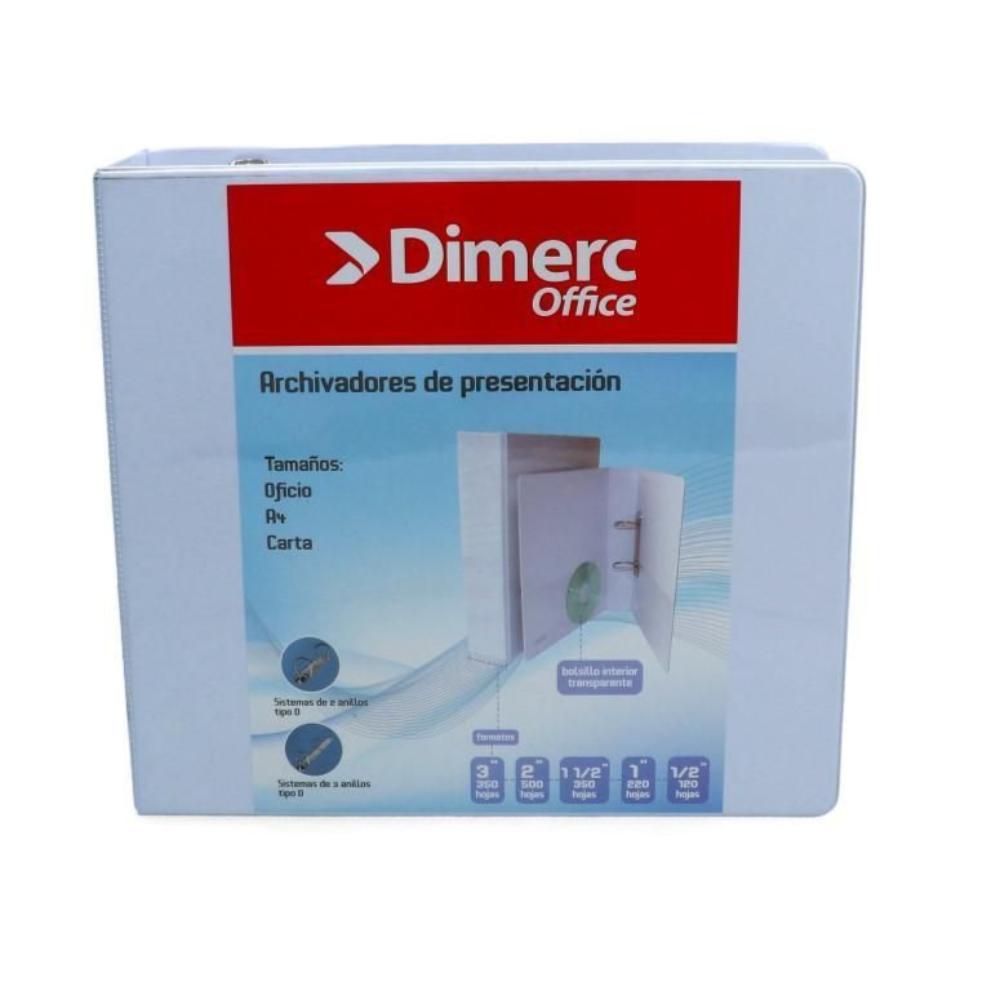 Mantener ordenada tu oficina con los archivadores Dimerc es más sencillo ya que posee tres anillos que son ideales para archivar tus documentos o para presentaciones en seminarios, conferencias, catálogos o lo que necesites.