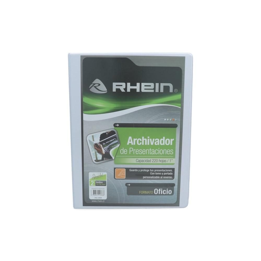 Para tus archivos tamaño oficio, Rhein tiene el archivador Catálogo blanco con dos anillos que sujetarán de manera segura tus documentos y fotografías. Gracias a su espesor de 1 pulgada podrás archivar hasta 220 hojas sin problema.
