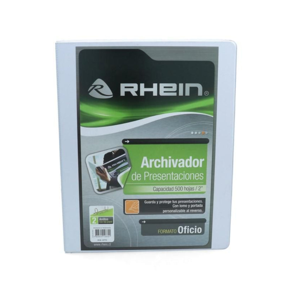 Para tus archivos tamaño oficio, Rhein tiene el archivador Catálogo blanco con dos anillos que sujetarán de manera segura tus documentos y fotografías. Gracias a su espesor de 2 pulgadas podrás archivar hasta 500 hojas sin problema.