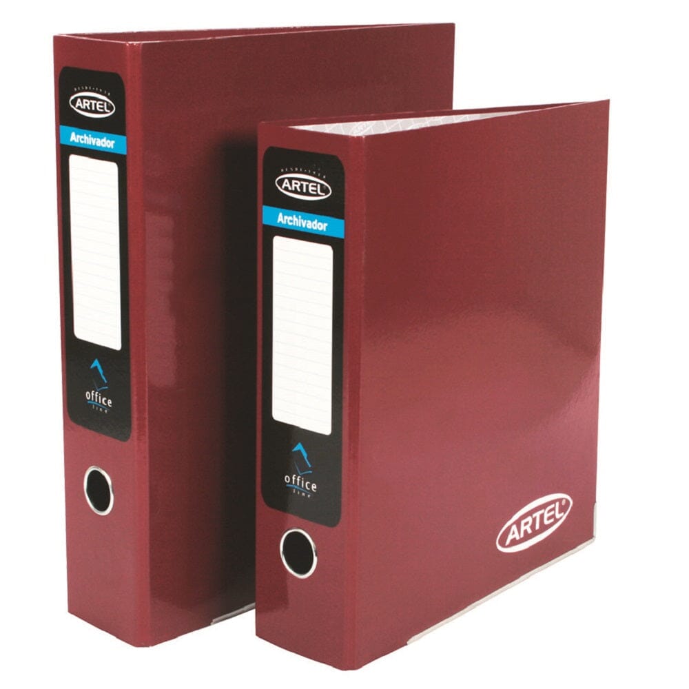Nuestro archivador de palanca en color burdeo es ideal para mantener tus papeles y documentos importantes perfectamente organizados. Con su lomo ancho, ofrece una mayor capacidad de almacenamiento, permitiéndote guardar una mayor cantidad de hojas y separadores.