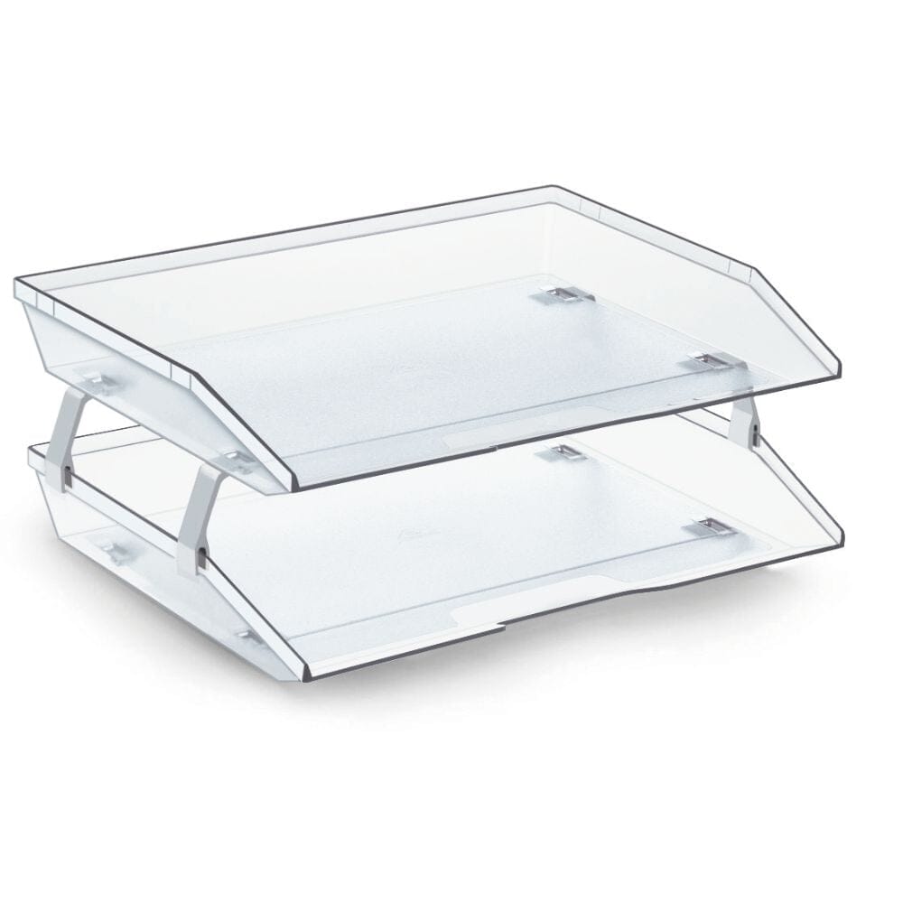 La Bandeja Acrílico Horizontal Facility Doble Cristal de Acrimet ofrece la combinación perfecta de funcionalidad y diseño sofisticado. Con dos niveles horizontales, es ideal para mantener tus documentos y accesorios organizados y siempre al alcance.
