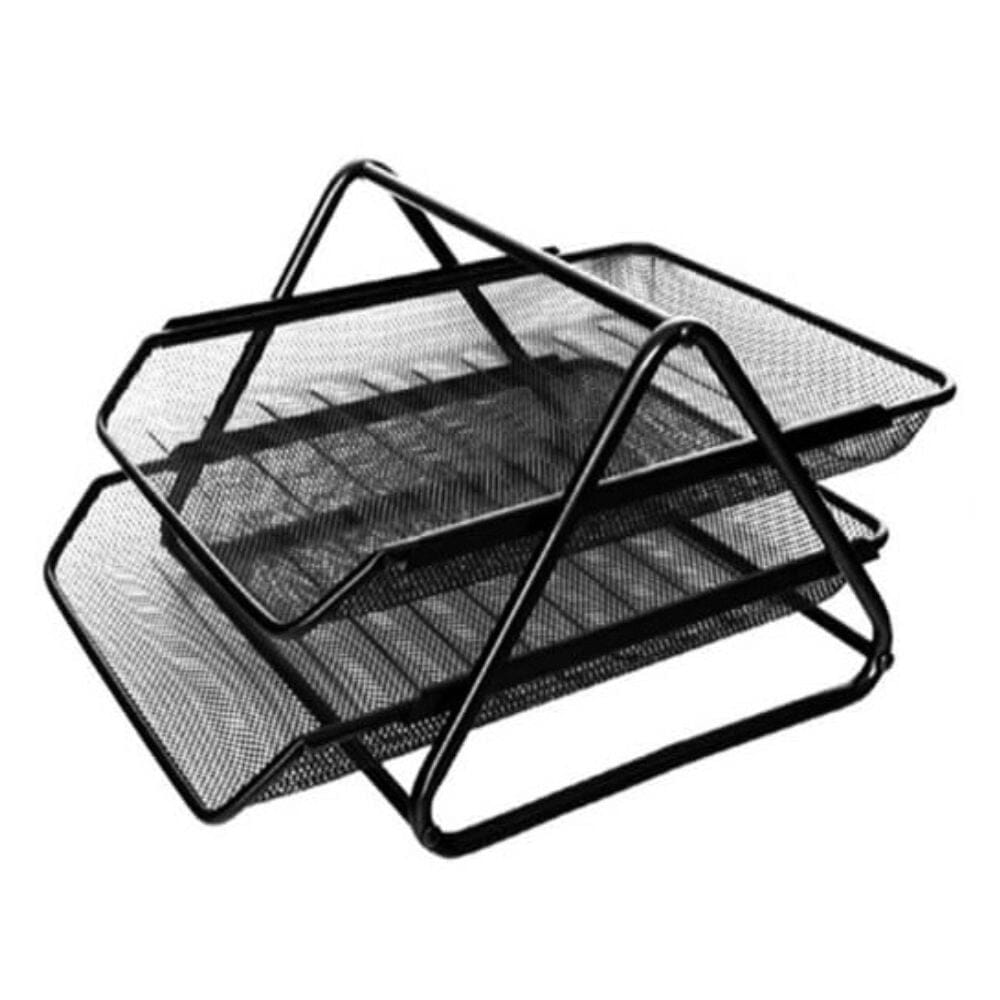 La bandeja está hecha de metal resistente de color negro, lo que la hace duradera y elegante al mismo tiempo. Además, su diseño contemporáneo y sofisticado la hace perfecta para cualquier entorno de oficina.