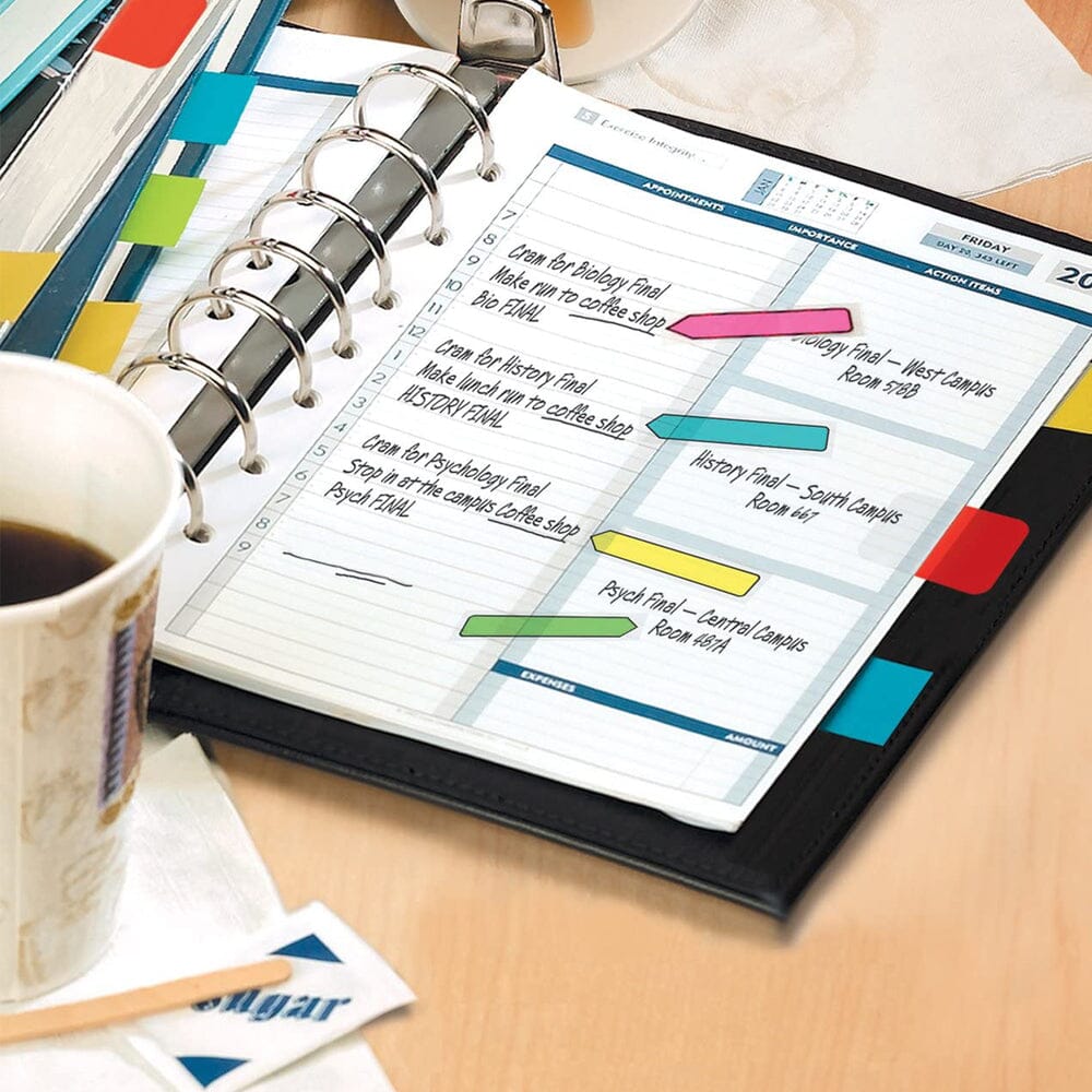 Las banderitas Post It de 3cm. deben estar siempre presentes en la oficina porque ahorran tiempo ayudando a mantener el orden y la eficiencia. ¡Se adhieren y quitan con facilidad! Estos señalizadores poseen una parte de color que queda a la vista y permite ubicar la página marcada, y otra transparente para que al pegarla a la página no tape la información.