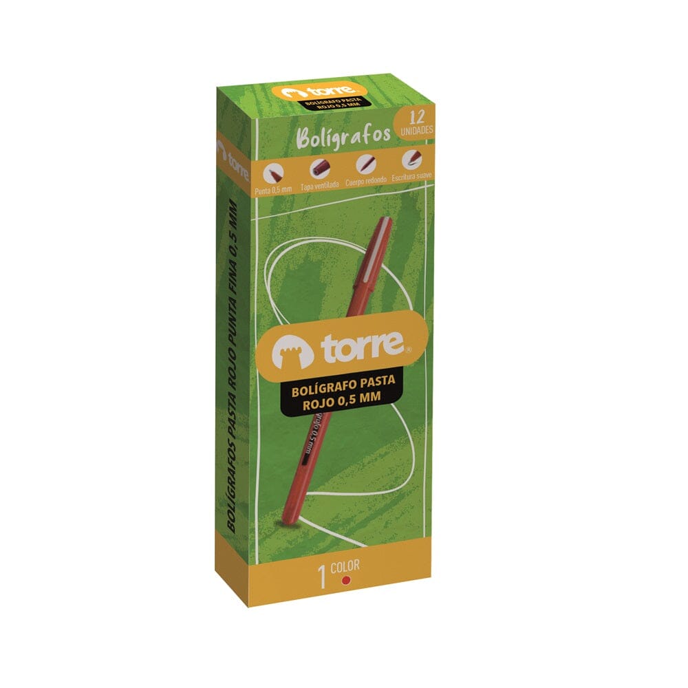 No pierdas la oportunidad de adquirir este lápiz pasta rojo de 0.5 mm de punta fina de Torre.