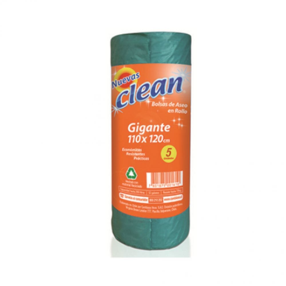 Aseo Clean Gigante es un rollo de 110 x 120 centímetros para uso en el hogar, industrial o lugares que requieren mayor capacidad para depósitos de basura, de excelente calidad, fabricadas con la más alta tecnología y una combinación de polietileno de alta densidad virgen más polietileno reciclado de primera calidad, otorgándole a la bolsa excelentes propiedades mecánicas destacándose por su reforzada resistencia a los pinchazos. Pigmentadas de color verde dando a la bolsa una mejor apariencia.