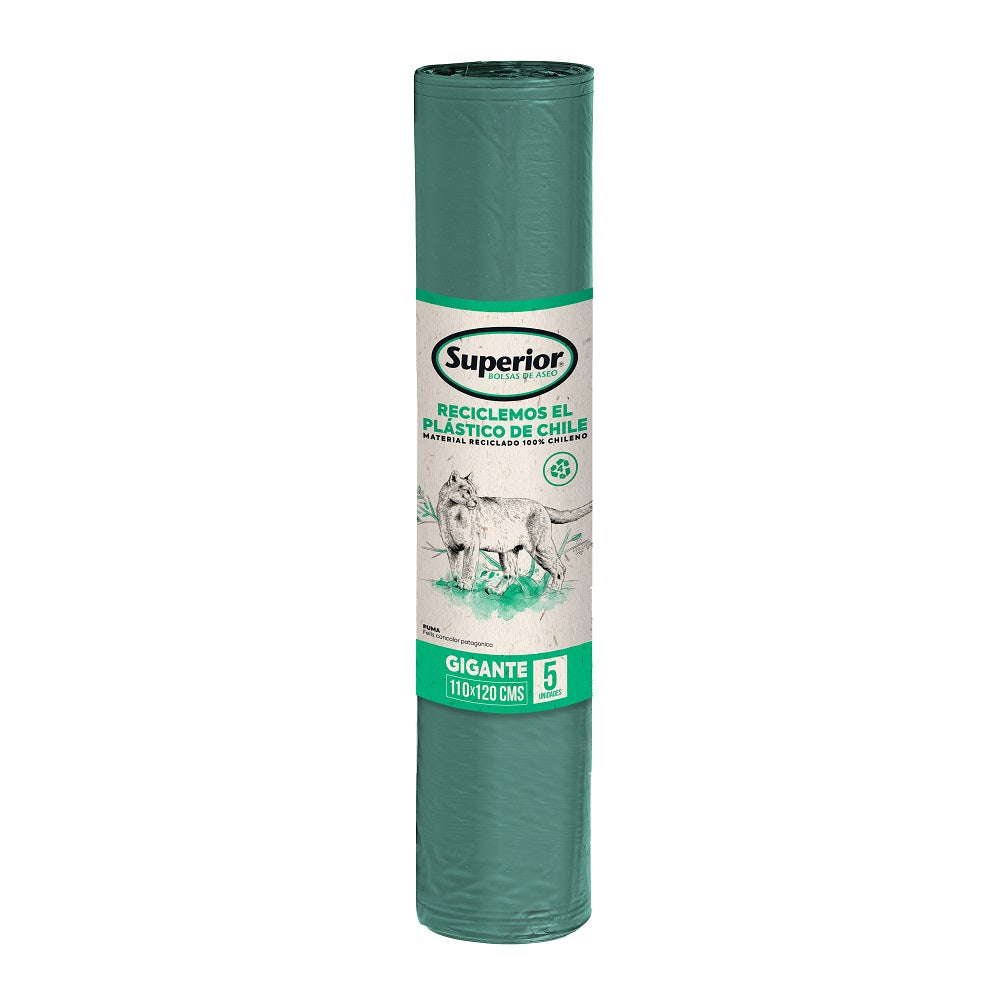 Superior te entrega bolsas de material virgen y reciclado de alta calidad. Las bolsas en su formato rollo gigante de 110x120 tendrás 5 unidades que podrán ser ocupadas donde más lo desees, ya sea en tu cocina o patio.