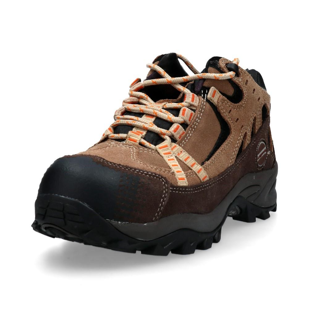 Calzado de seguridad de cuero gamuza-do, talón reforzado y cuello acolchado. Con planta de caucho acrilo nitrilo y y puntera de composite, haciendo el calzado más liviano y confortable.