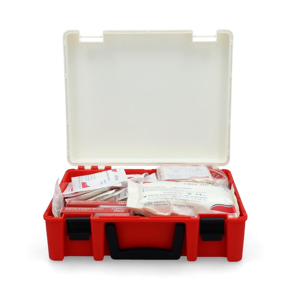 El Botiquín STEELPRO es de fácil traslado configurados para realizar los primeros auxilios ante una emergencia médica, con procedimientos simples y productos esenciales recomendados por el ministerio de salud para el control de sangramiento, limpieza y cubrimiento de pequeñas heridas, llevado por una persona no titulada en medicina, antes de la intervención de los servicios de emergencia profesionales.