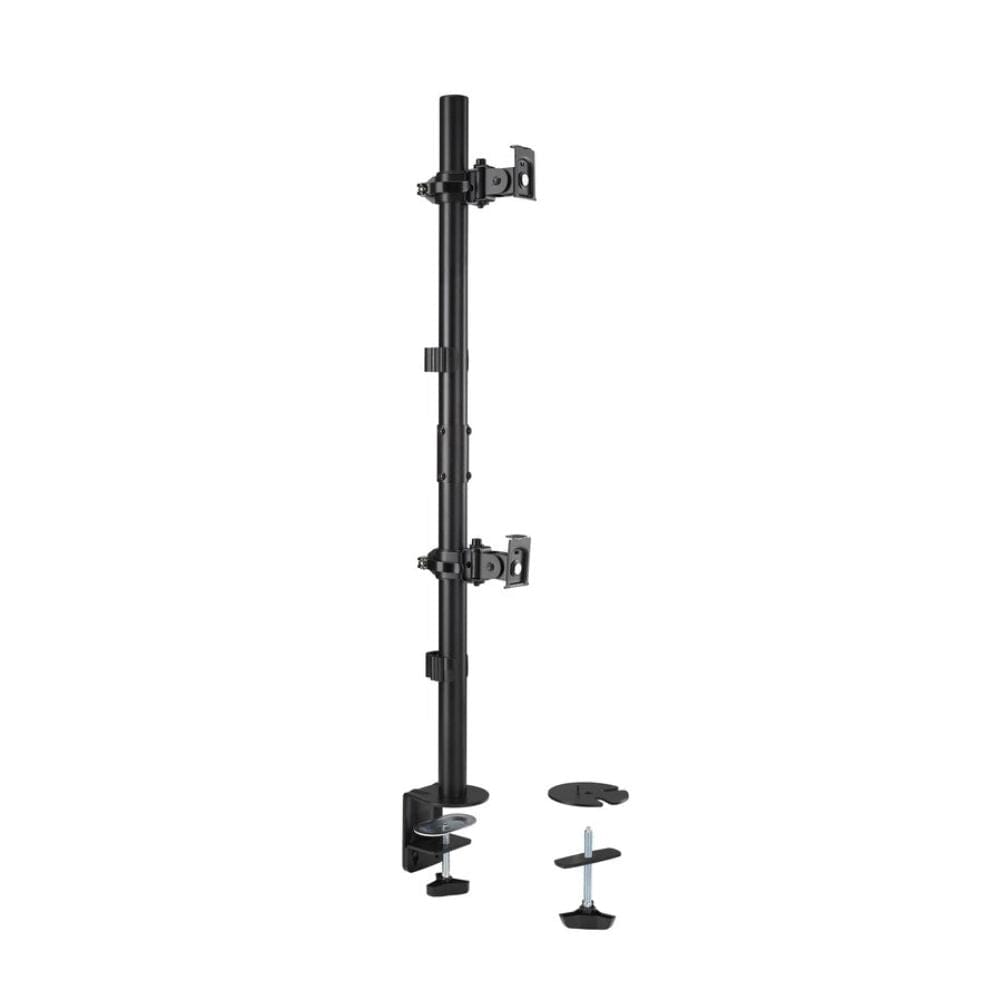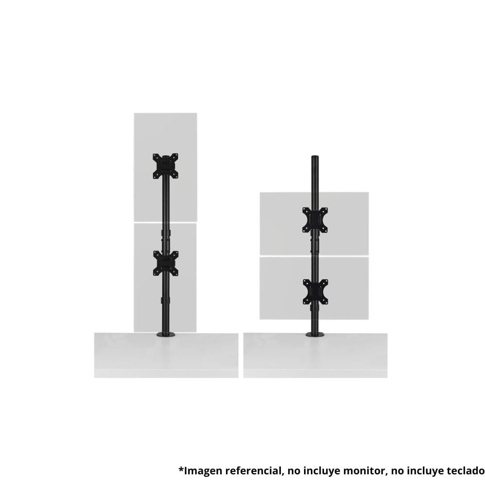 • El soporte vertical doble admite dos pantallas de hasta 32" (9 kg/19,8 lb) en horizontal y 29" en vertical