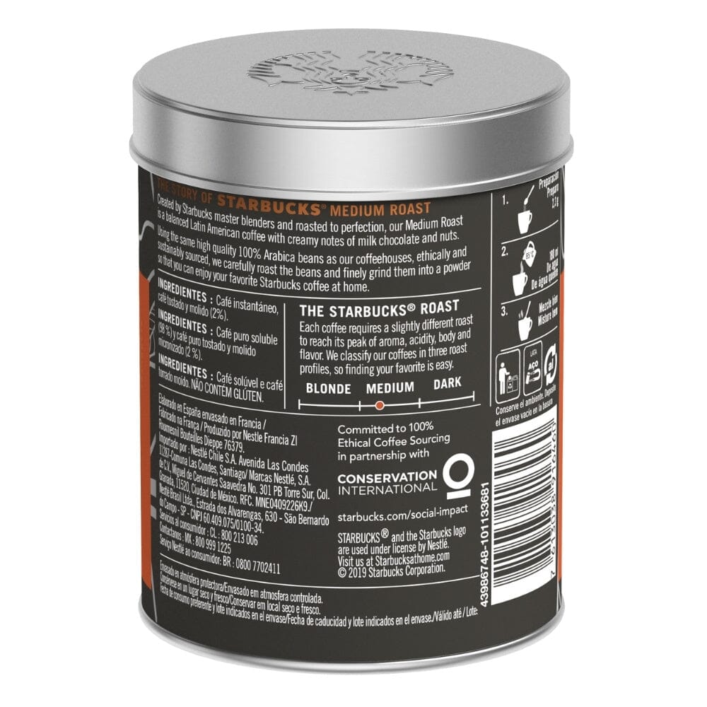 Lleva Starbucks a tu hogar u oficina con el exquisito Café Starbucks Medium Roast, un café suave y balanceado. Rico en sabores latinoamericanos con notas cremosas de chocolate y nueces.