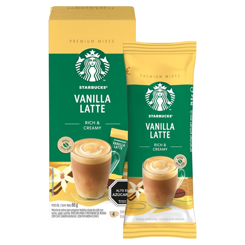 Disfruta del delicioso sabor del café con leche y un toque de vainilla con nuestro Café Vanilla Latte de Starbucks. Cada caja contiene 4 sobres individuales de 21.5 gramos, perfectos para disfrutar en casa o en la oficina.