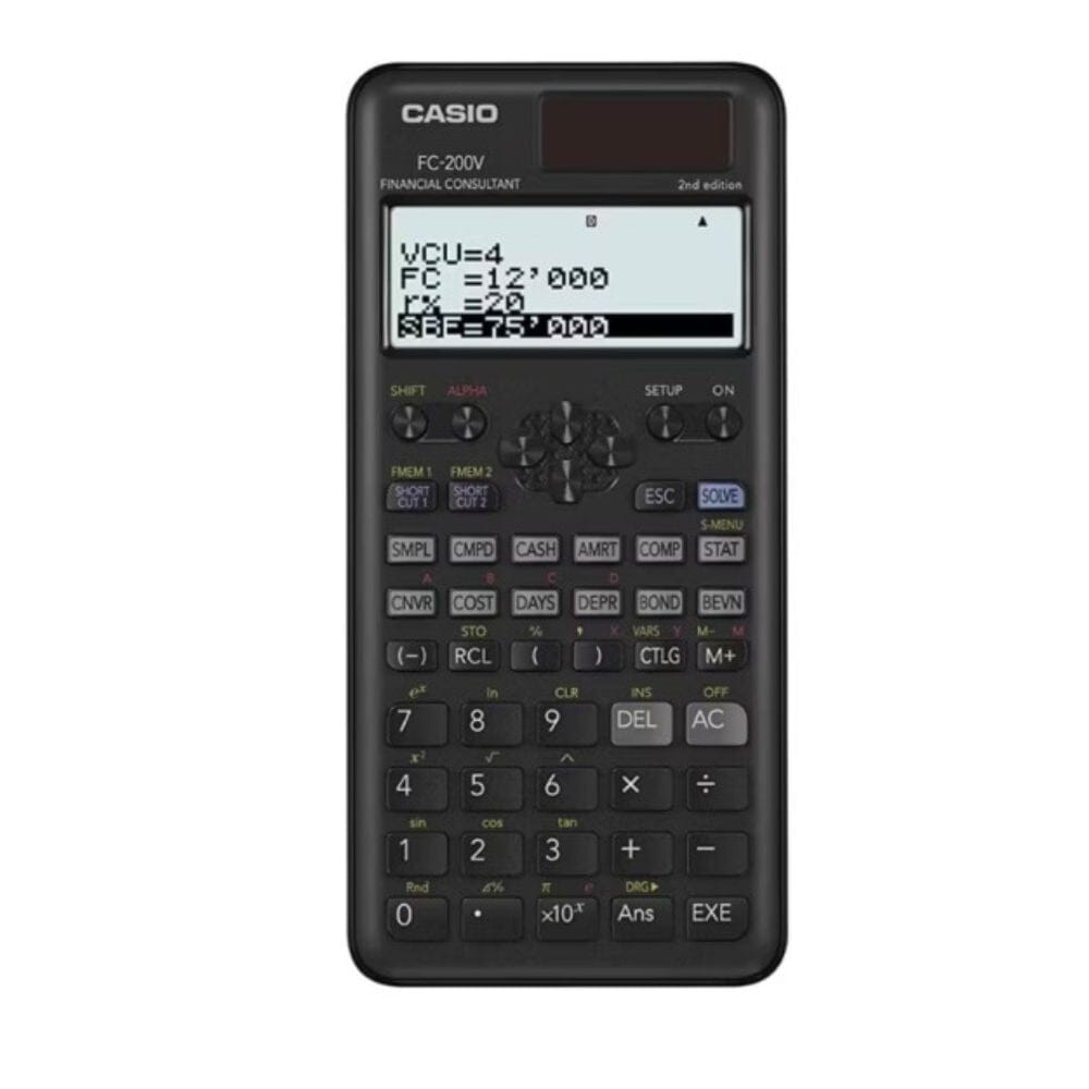 Calculadora Casio Financiera FC-200V-2 referente en el mundo de las finanzas. Utilizada en el mundo universitario como estándar y ampliamente recomendada en los sectores laborales vinculados con la contabilidad.