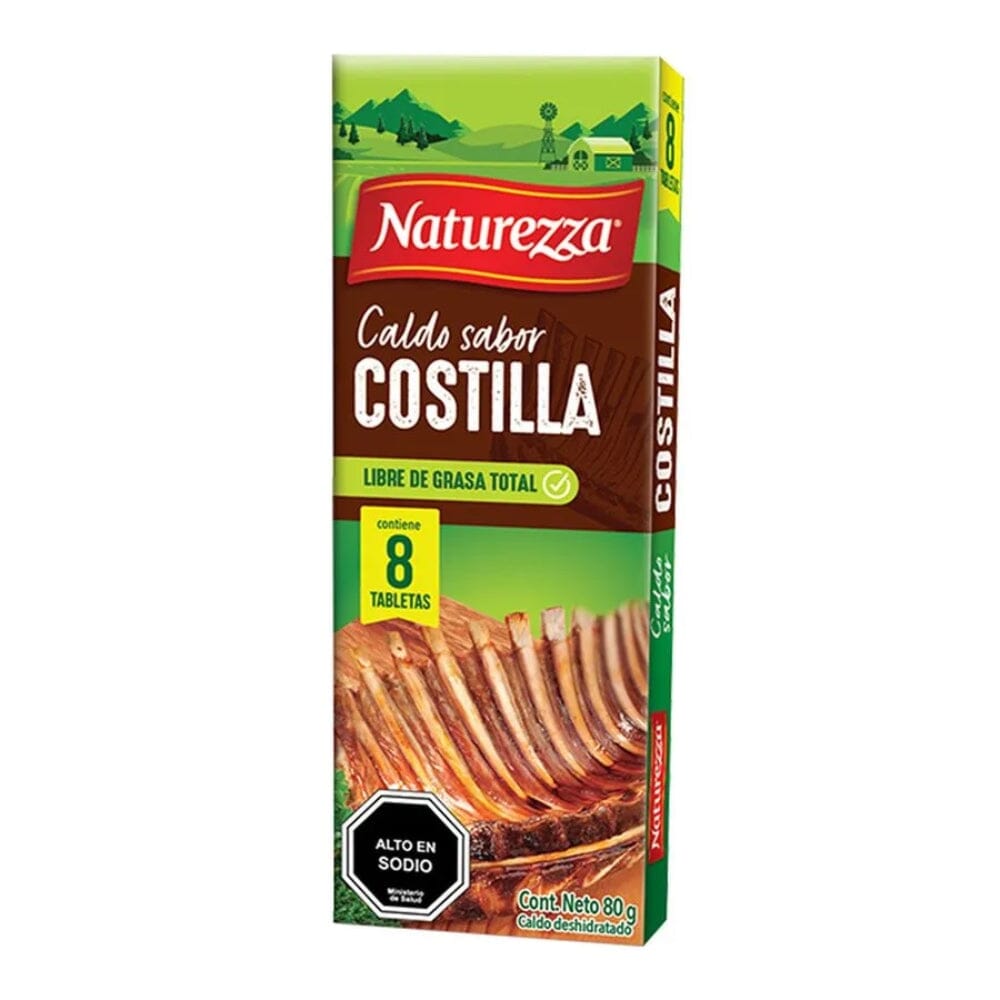 El caldo de costilla Naturezza en formato de 8 tabletas (80 g) es ideal para realzar el sabor de tus preparaciones. Perfecto para sopas, guisos y legumbres, aporta un toque casero y delicioso con el inconfundible gusto de la costilla.