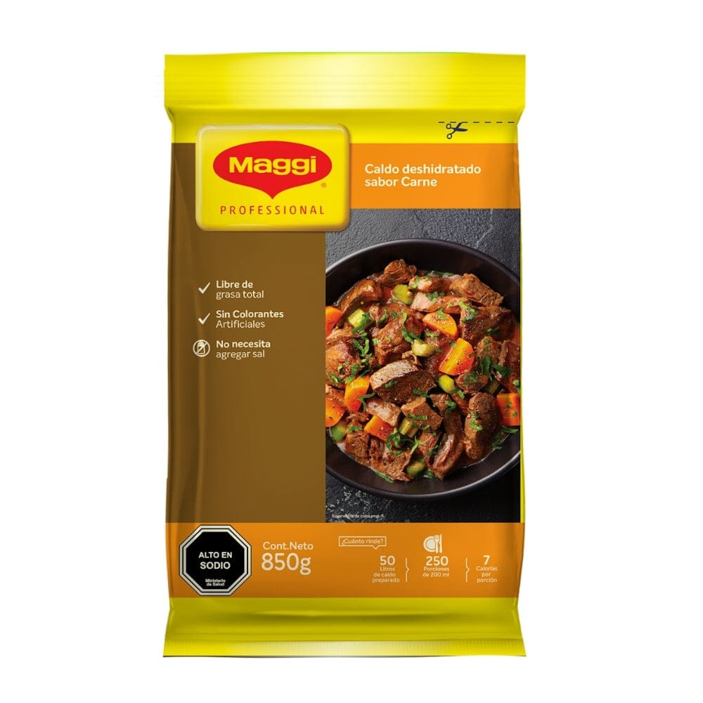 Cuando cocines, que no se te puede olvidar agregar el caldo sabor carne 850 gr Maggi. Con el le darás un toque especial a todas tus comidas y te recordaran a esas comidas caceras que te preparaba tu abuelita.