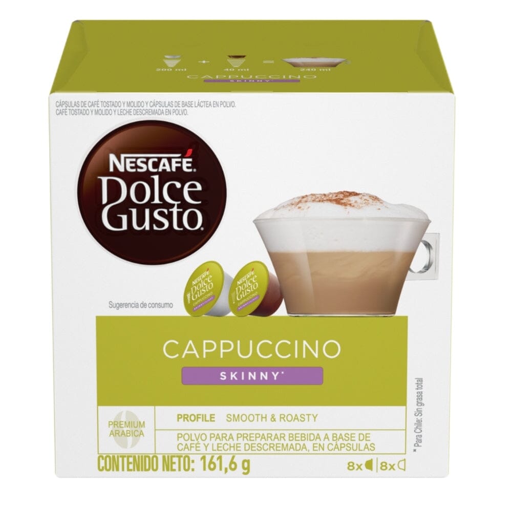 Rebajamos las calorías pero ni una pizca el sabor. Café 100% arábica de tueste natural, leche descremada y espuma . 50 calorías con todo lo que te gusta de un auténtico Cappuccino.
