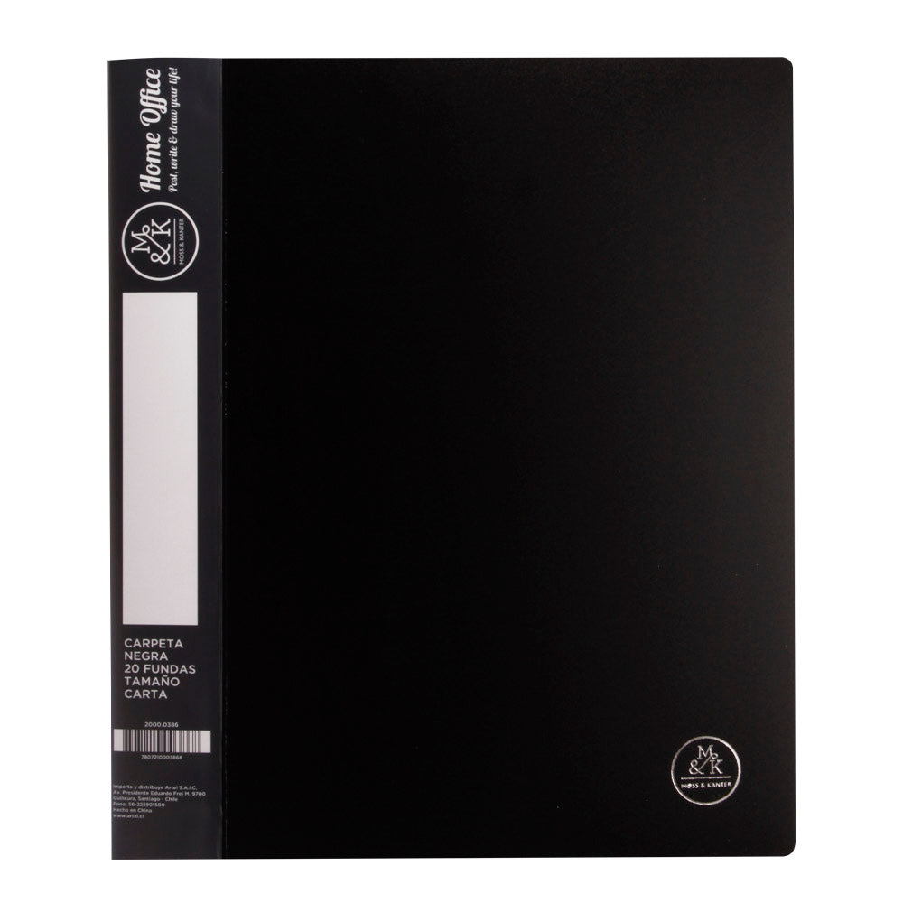 Para que organices tus papeles de manera más simple y rápida, la carpeta con funda carta negra de la marca Artel es ideal. Con ella podrás guardas mucha información como archivos, boletas, fotos, etc. Ya que cuenta con una capacidad de 20 fundas en cada carpeta