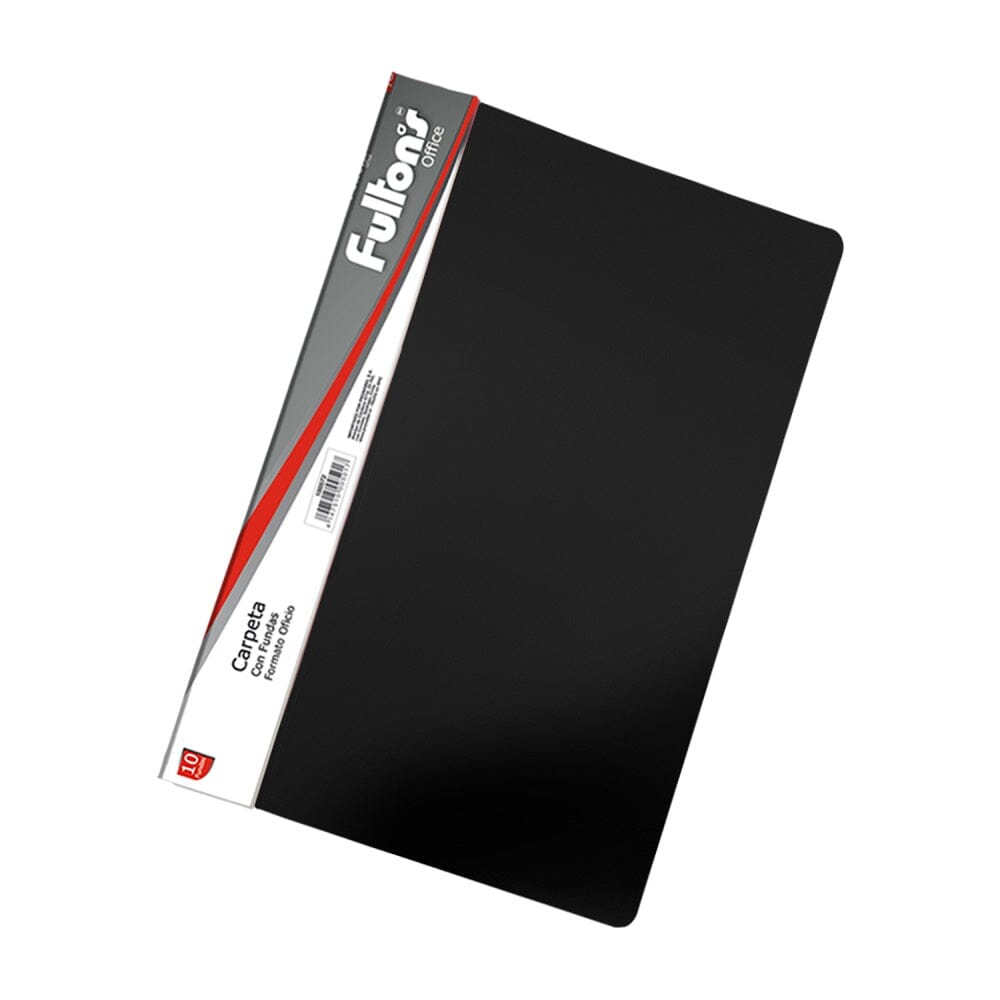 La Carpeta con Fundas Oficio Negra de Fultons es la solución ideal para mantener tus documentos organizados y protegidos. Con 10 fundas de tamaño oficio, esta carpeta permite almacenar y clasificar tus papeles de manera segura, evitando que se dañen o se ensucien. Su color azul y diseño práctico hacen que sea fácil de identificar en tu espacio de trabajo.