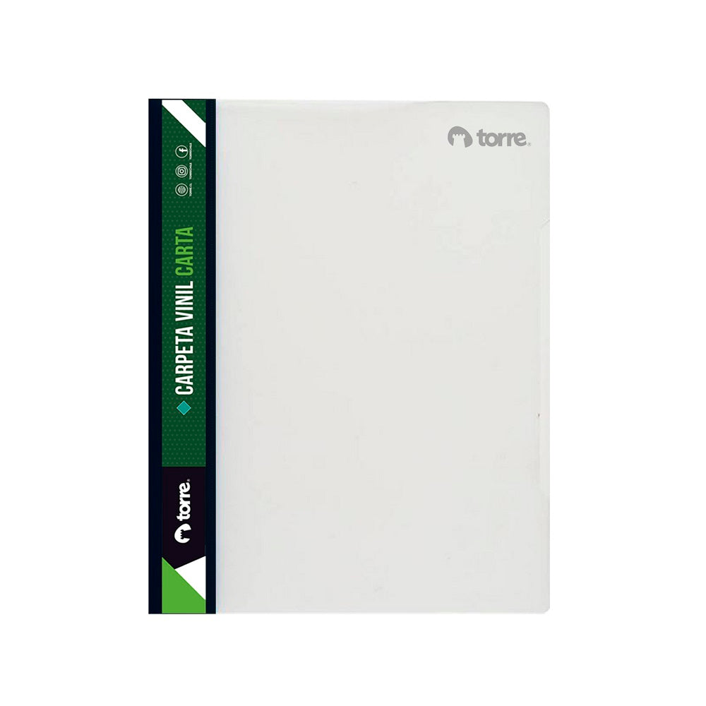 La carpeta vinil de la marca TORRE es ideal para guardar nuestras hojas de tamaño carta, así no tenemos documentos desparramados por cualquier lado. Cuanta con acco clip y lomo de color negro.