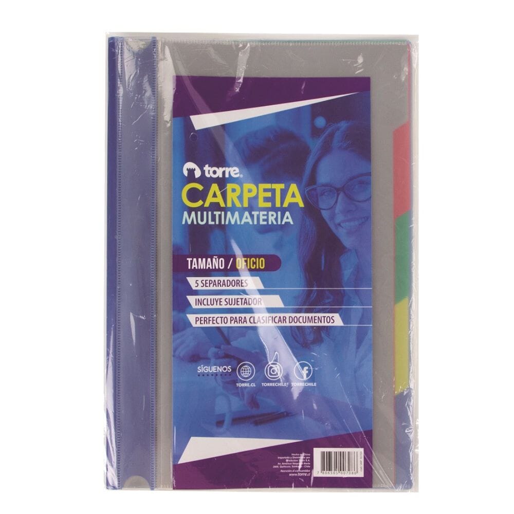 La carpeta vinil multilátera de la marca Torre es ideal para guardar nuestras hojas de tamaño oficio, de esta manera podemos mantener el orden en nuestro escritorio o lugar de trabajo, además podemos separarlos según su color para una mayor organización.