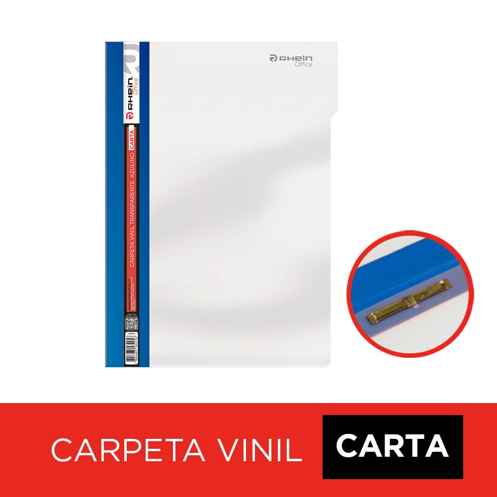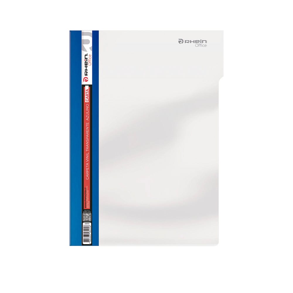Organiza tus documentos con la Carpeta Vinil Transparente Carta Azulina de Rhein. Resistente y práctica, ideal para proteger tus archivos tamaño carta con un toque de color y estilo. ¡Perfecta para oficina y hogar!