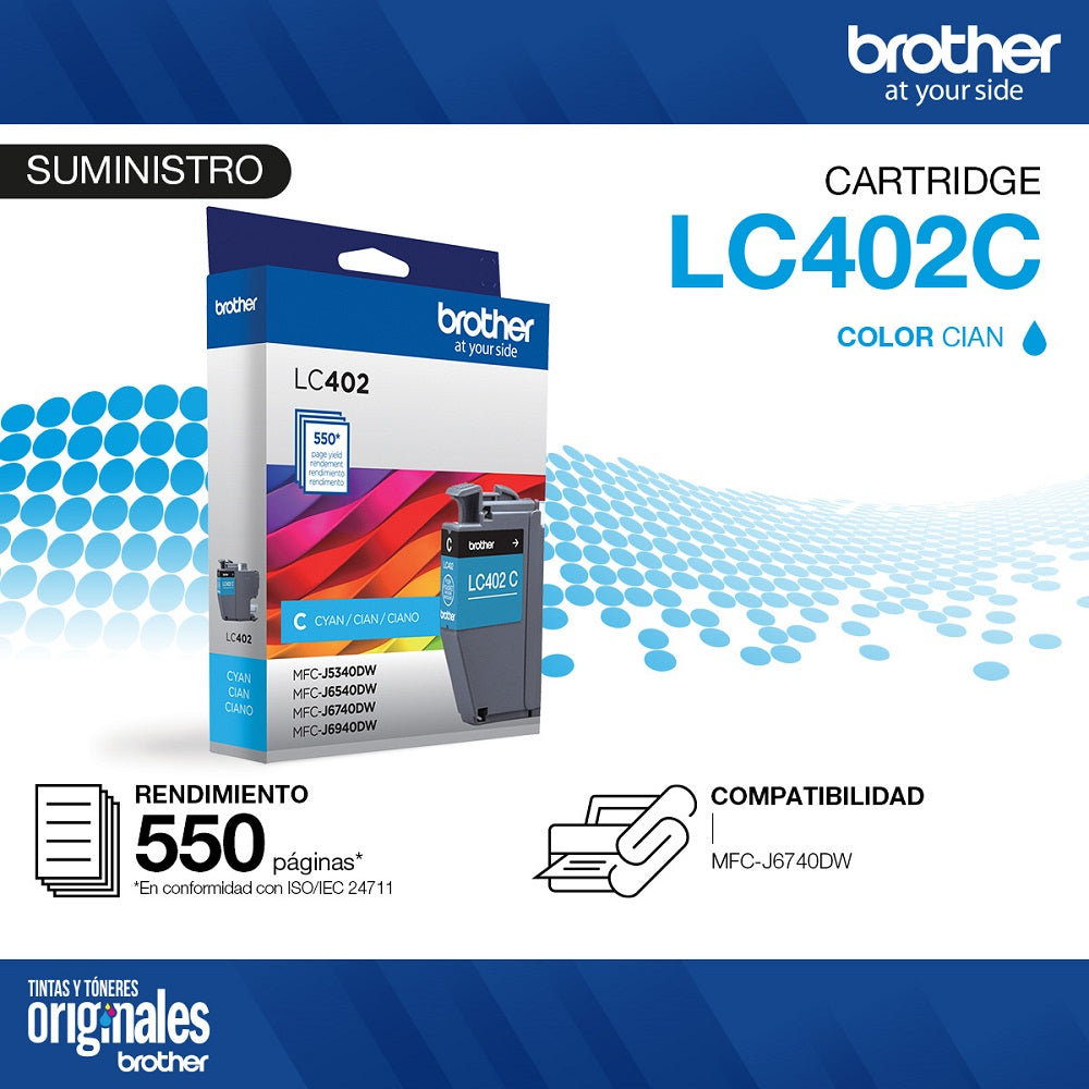 ¿Necesitas tinta negra para tu impresora MFC-J6749DW?, no te preocupes, tenemos para tu el cartucho tinta lc420cs cian/cyan de Brother.Con el tienes hasta 550 páginas de impresión en cian sin problemas. Sera tu nuevo aliado al momento de trabajar.