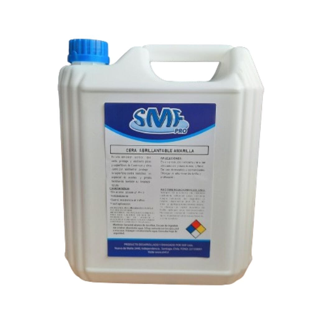 La Cera Abrillantable Amarilla SMF es una emulsion acrílica, formulada para sellar y dar un alto nivel de brillo en cualquier tipo de piso duro. Otorga protección, sello y brillo al lustrar.