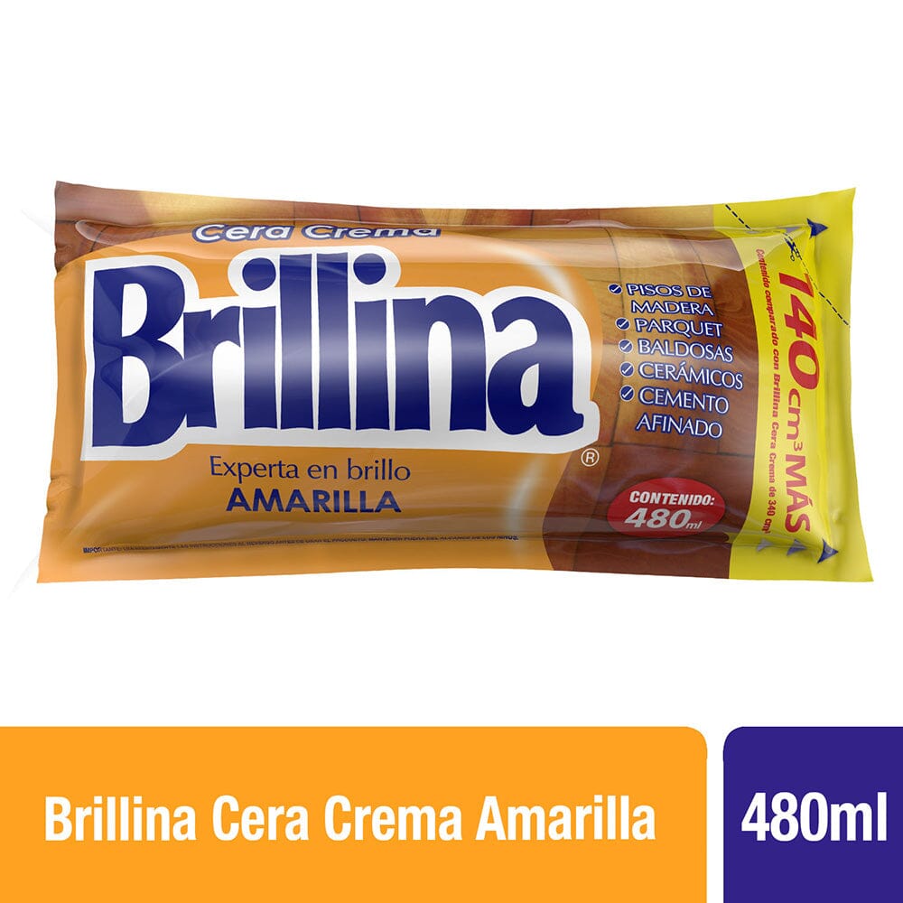 ¿Necesitas encerar tus pisos? ¡Tenemos lo que buscas! Te presentamos la Cera crema sachet amarilla 480 ml de Brillina.
