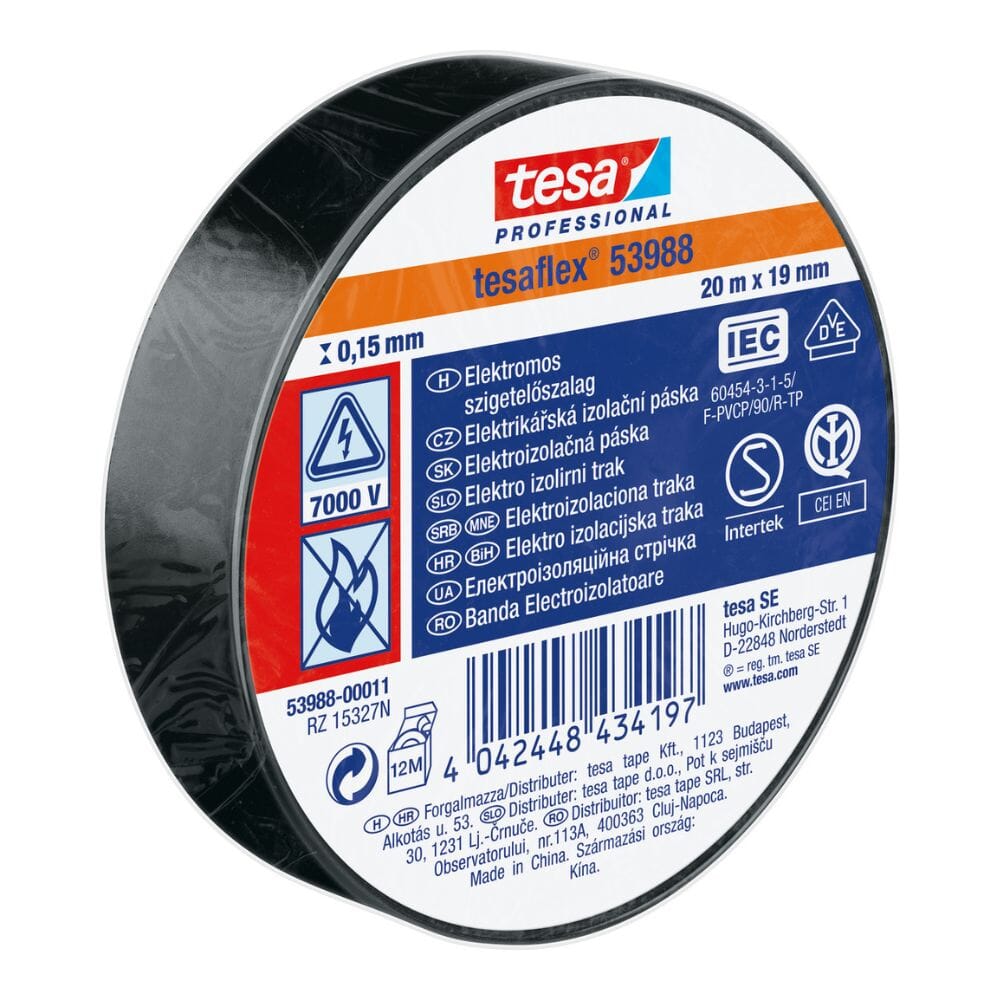 Asegura tus conexiones eléctricas con la cinta aislante eléctrica negra de Tesa. Con un tamaño de 19 mm x 20 m, esta cinta ofrece una excelente protección y aislamiento para cables y componentes eléctricos.