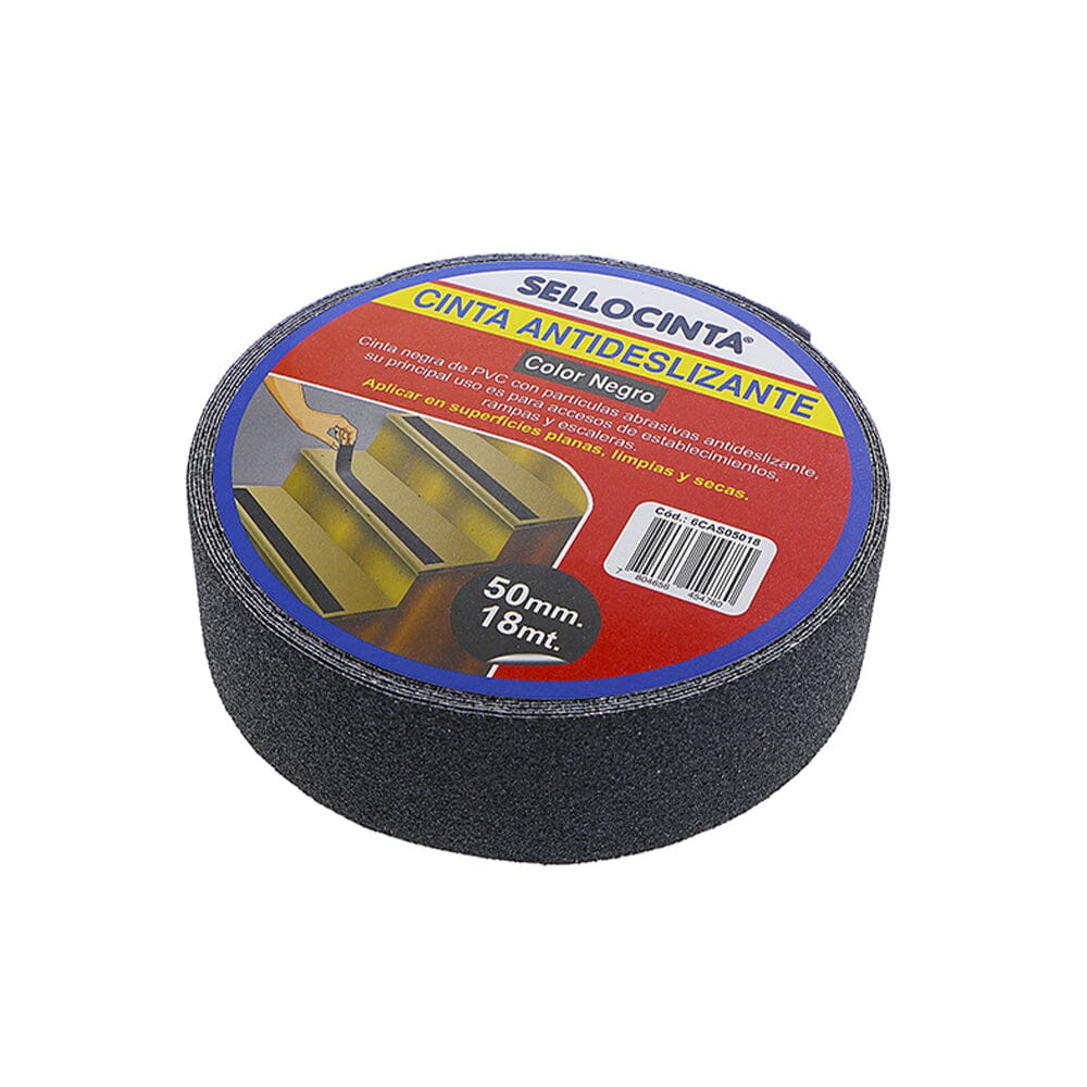 Cinta con partículas abrasivas unidas por una fuerte y duradera película plástica.