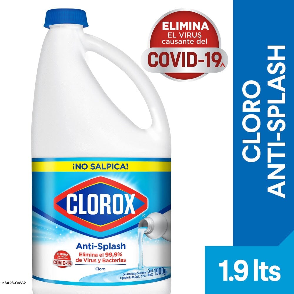 Para limpiar tu casa, lugar de trabajo o lo que necesites, la mejor opción es el cloro no salpica 1.9 lt de Clorox. Con su fórmula anti-splash permite utilizarlo como siempre, pero con menos derrames y salpicaduras.