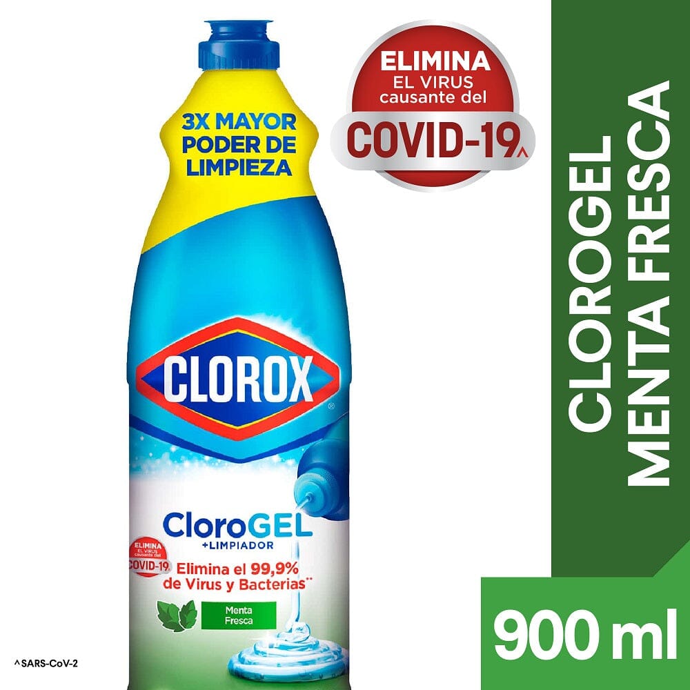 Que no te falte Cloro gel Clorox para eliminar el 99.9% de bacterias en tus superficies. Cloro gel con aroma menta fresca posee una formula espesa que se adhiere a las superficies removiendo la suciedad. Podrás ocuparlo en baños, cocinas y lavado de ropa. Su formato de 900 ml te apoyara en la limpieza y desinfección de tus espacios.