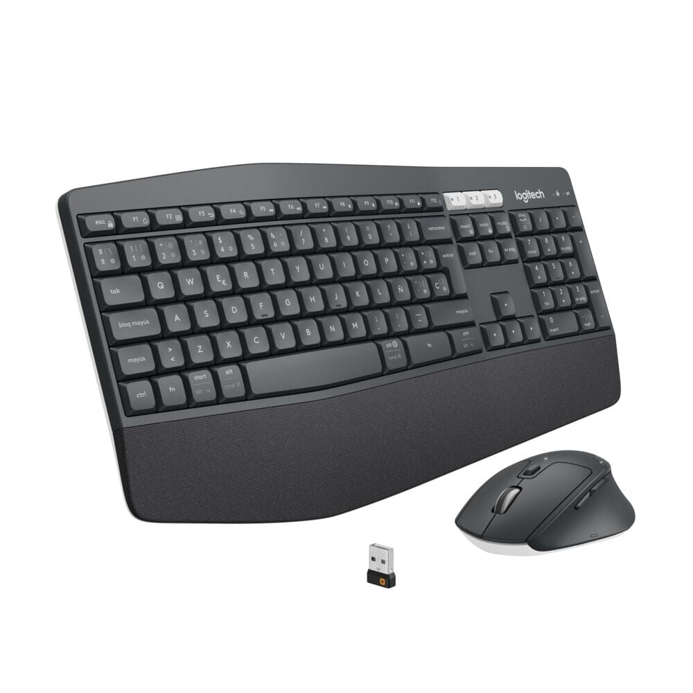 Disfruta de un nivel superior de comodidad y productividad con la eficacia de MK850 Performance. Domina la situación cómodamente, con un reposamanos blando, una estructura de teclas curvada y un ratón contorneado. Cambia de pantalla usando el teclado o el ratón, para trabajar en varias tareas simultáneamente.