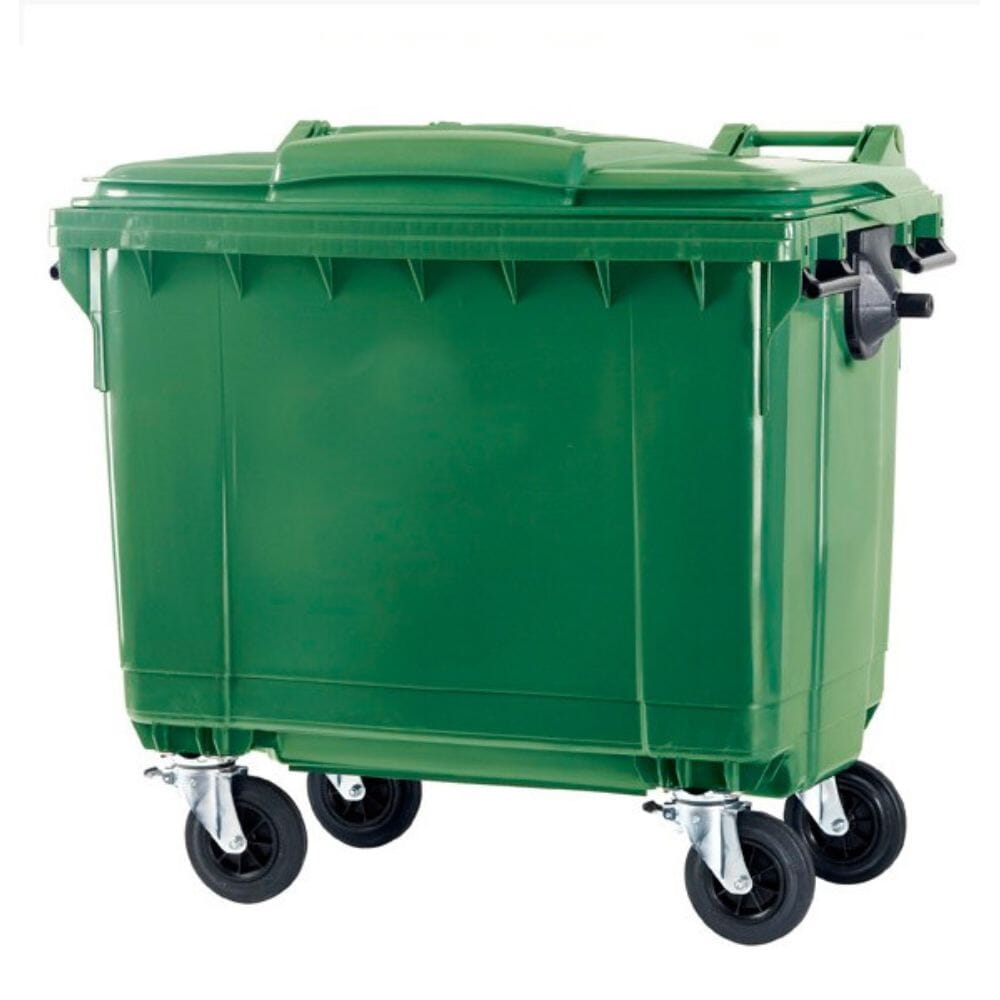 El contenedor DUST con rodajas está fabricado en Alemania por la marca ESE con polietileno virgen de alta densidad bajo el proceso de inyección, por lo que es muy resistente a los golpes.
