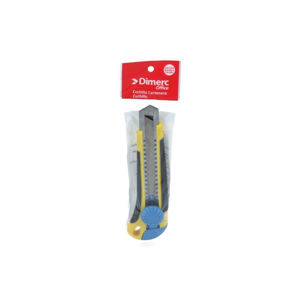 No puedes dejar de tener a mano este Cuchillo Cartonero de Dimerc, se caracteriza por tener un freno muy seguro ya que es en forma de tornillo. Además es de guía larga, lo que protege del cuchillo a la perfección y además sirve de guía para lograr un acabada fino y pulcro. No puede faltar en tu trabajo u oficina.