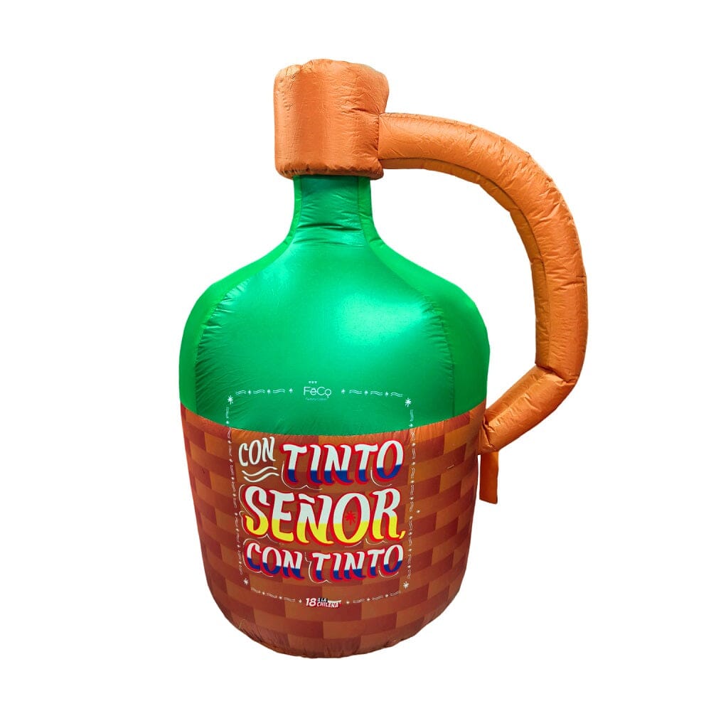Este inflable gigante con forma de garrafa de vino tinto es perfecto para ambientar fondas, ferias costumbristas, locales comerciales o fiestas patrias.