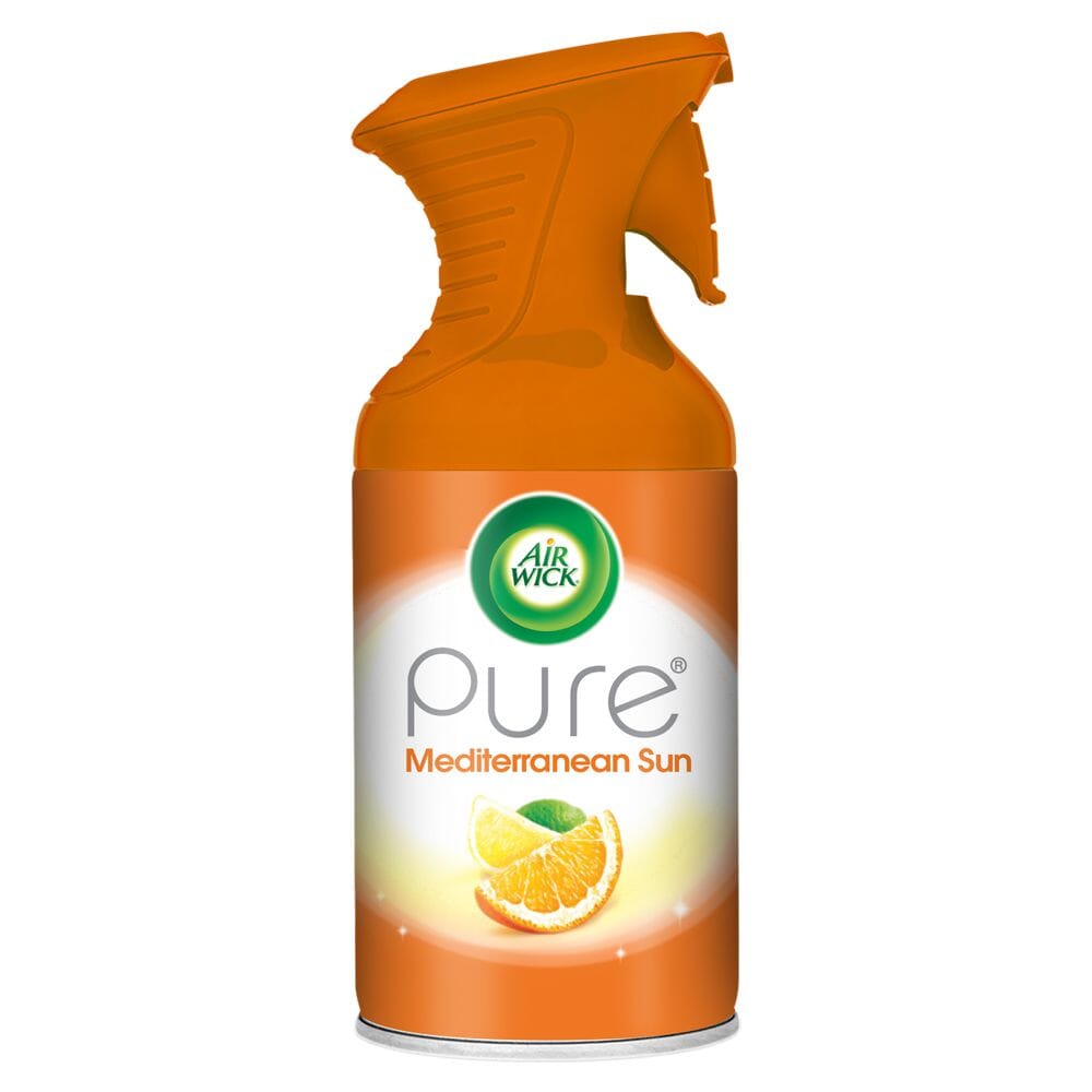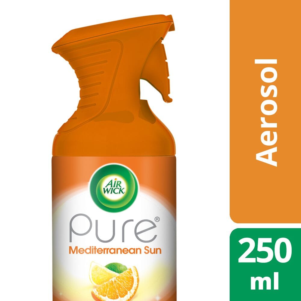 Un fresco y placentero aroma cítrico es el que te presenta el Desodorante ambiental pure mediterranean 250 ml Air Wick, para neutralizar olor en tu hogar u oficina sin dejar residuos de agua.