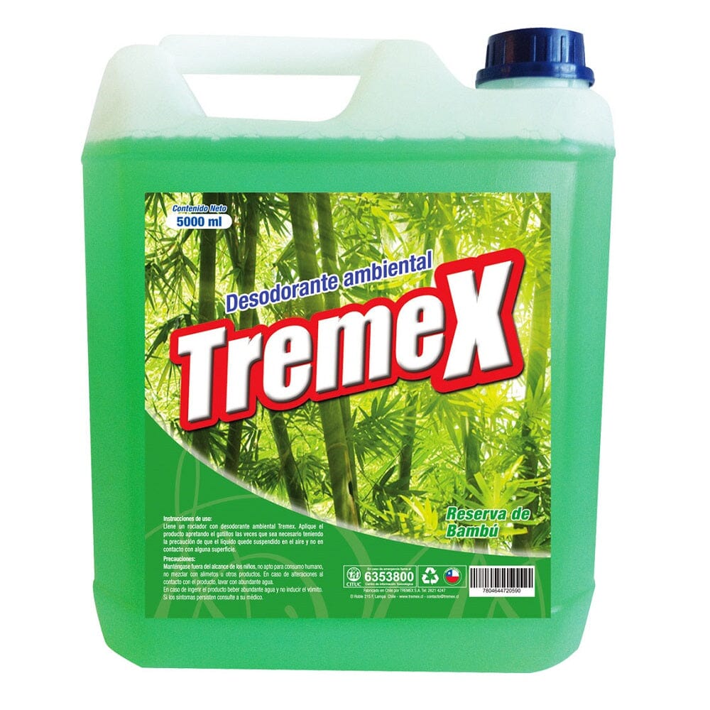 Desodorante ambiental líquido Tremex está formulado con aromas que enmascaran malos olores, perfumando con estas esencias los lugares donde sean usados, hogar e instituciones que requieren esencias con notas frescas para armonizar el ambiente.