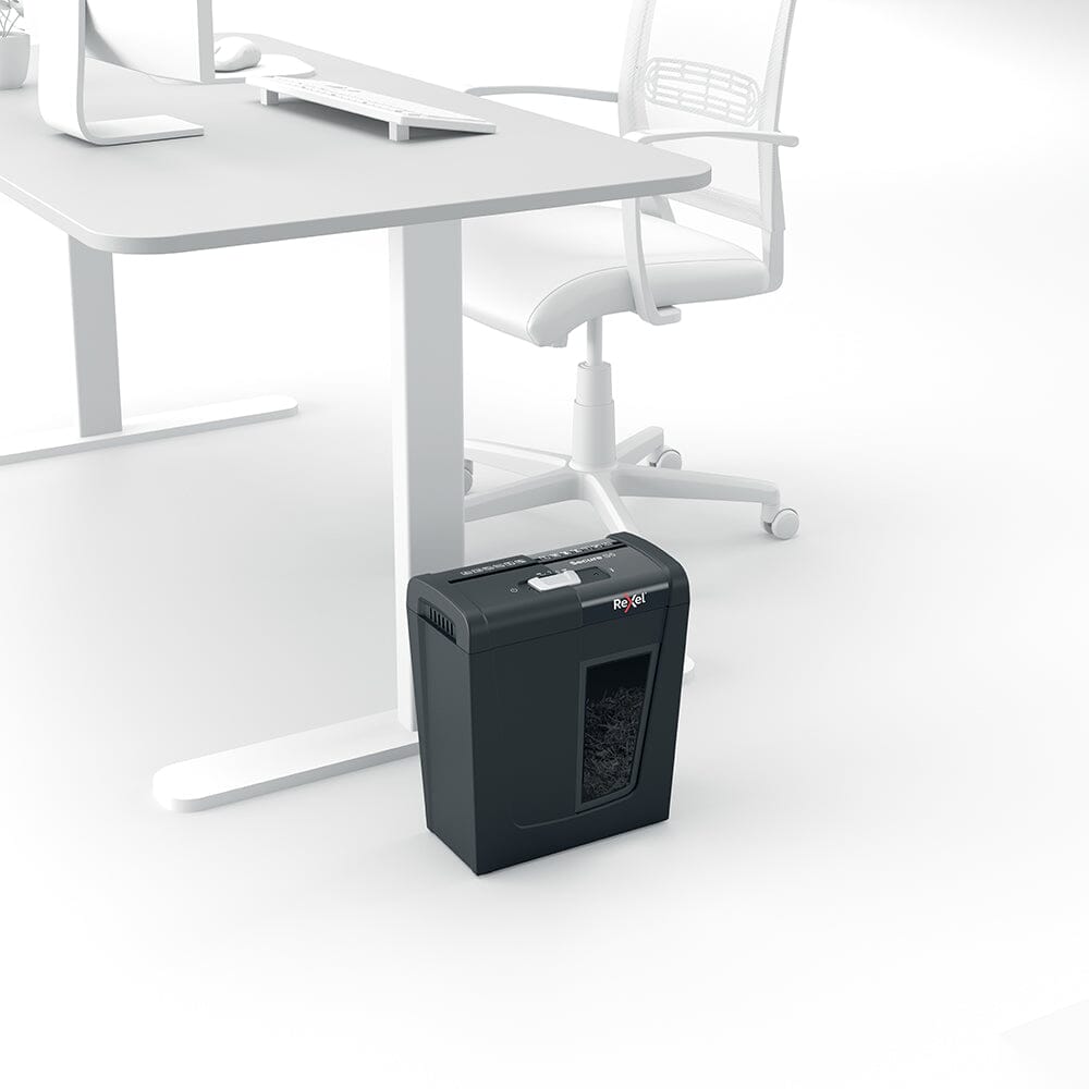 Diseño Compacto: Su diseño compacto permite que la Trituradora de Documentos Secure S5 de Rexel se adapte fácilmente en cualquier espacio de trabajo, lo que la convierte en una herramienta conveniente para la oficina o el hogar.