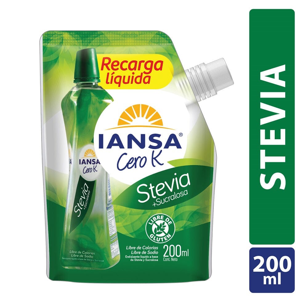 El Endulzante Stevia Sucralosa Recarga 200 ML Iansa Cero K es la opción perfecta para quienes buscan endulzar sus alimentos y bebidas con el toque natural de la stevia, combinado con sucralosa para un sabor dulce sin calorías. Ideal para quienes desean mantener un estilo de vida saludable sin renunciar al sabor.