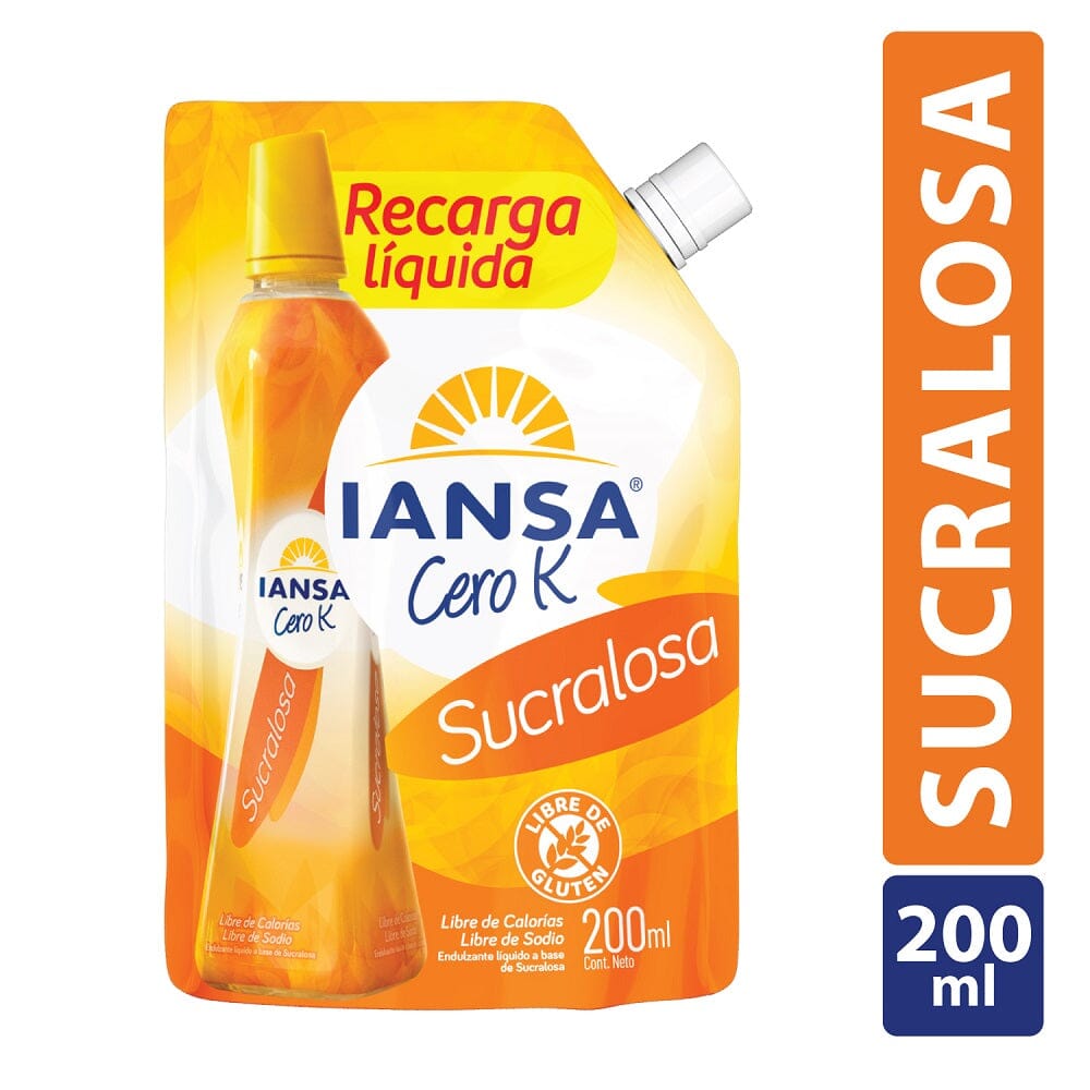 El Endulzante Sucralosa Recarga 200 ML Iansa Cero K es la opción ideal para quienes buscan endulzar sus alimentos y bebidas sin añadir calorías extra. Su fórmula basada en sucralosa ofrece un dulzor similar al azúcar, permitiéndote disfrutar de tu comida favorita sin comprometer tu bienestar.
